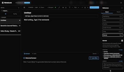 This is a little passion project of mine designed as an educational tool for poetry. Peruse a catalog of poetic meters, forms, and literary devices! Log in to have access to saving entries, and a fully featured note taking app that allows you to view reference materials while you