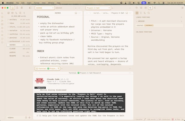 Apparently you can install a terminal extension in Obsidian and run Claude Code in it