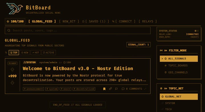 I'm a total n00b and still working on this. A fun looking nostr client with reddit/digg/x like functionality but with up/down votes limited per day and verified with encryption to your user key. This is meant to encourage thoughtful voting and limit spamming. Credit To the o