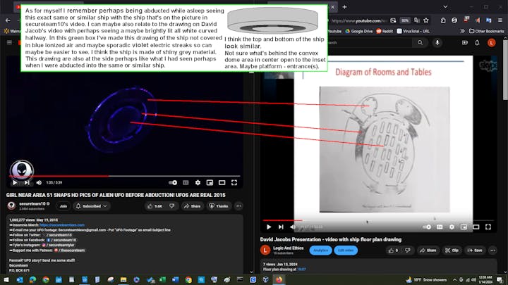 This image comparing a perhaps real image of a ship with a drawing made by perhaps someone else’s memory of when they were abducted. Showing that it seems there are similarities so that it could be the same or similar ship. First of all regarding this image with the ship image