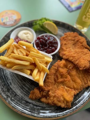 Nothing fancy today - schnitzel with french fries and lingonberry sauce... a mixture of germanic and nordic for a satisfying lunch