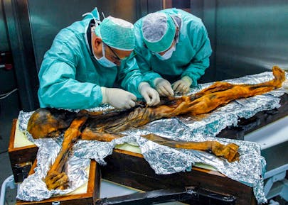 Γtzi, the remarkably preserved Copper Age mummy, was discovered by German hikers Helmut and Erika Simon on September 19, 1991, in the Γtztal Alps on the Italian-Austrian border, emerging from melting glacial ice: found with his complete clothing and sophisticated equipment, inclu