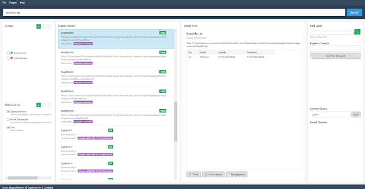 There are now connectors for Websearch, MS Teams and SQL (MySQL/MSSQL/PostreSQL) -- MetaSearch Pro is an extensible local meta search engine for Windows that searches multiple data sources simultaneously. Connect databases, APIs, file systems, and more with powerful plugin supp