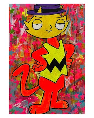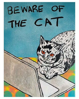 Beware Of The Cat Painting by Barrie J Davies, Mixed media on Canvas, 40 cm x 30 cm, Unframed and ready to hang.