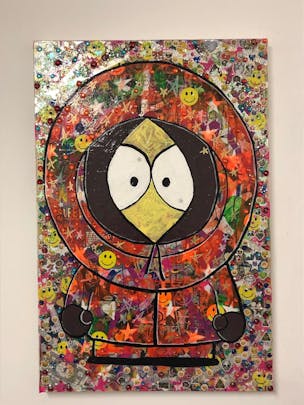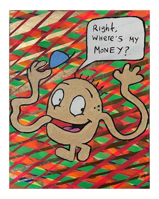 Where's My Money Painting by Barrie J Davies, Mixed media on Canvas, 45 cm x 35 cm, Unframed and ready to hang.