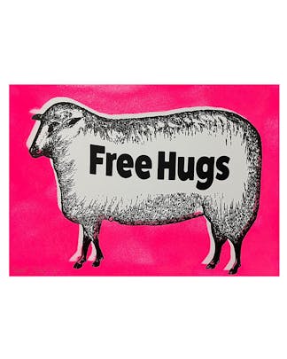 Pink Free Hugs Print by Barrie J Davies, unframed Silkscreen print on paper (hand finished) edition of 1/1 - A3 size 42.0 cm x 29.7cm
