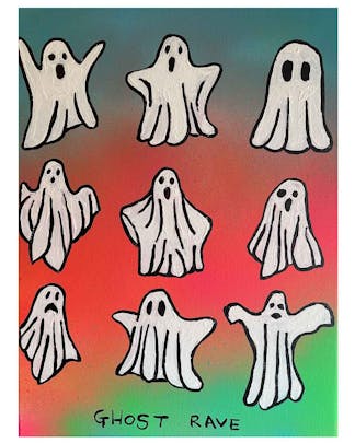 Ghost Rave Painting by Barrie J Davies, Mixed media on Canvas, 40 cm x 30 cm, Unframed and ready to hang.