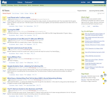 The digg homepage, on this day, 2007. 19 years ago. I feel old.