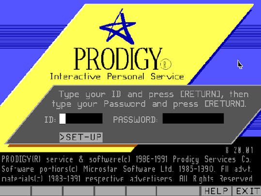 Went from an Apple ][+ computer to a Hewlett Packard that came with Prodigy. After this I learned that BBS were a thing. Use to write on a programming forum and get assembly code for working with the soundblaster card. Went to college a couple years later, then learned abo