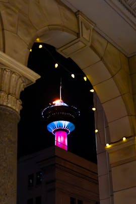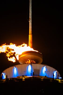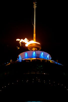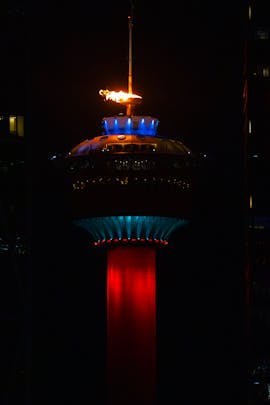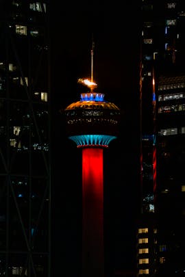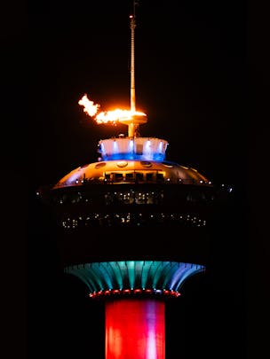The flame was lit on the Calgary Tower to celebrate the winter Olympics opening ceremonies