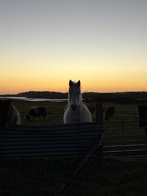 We have Mini Shetlands, Welsh Cobs, and Dartmoors. They are always inquisitive. Minnie (featured), is the head of the herd.