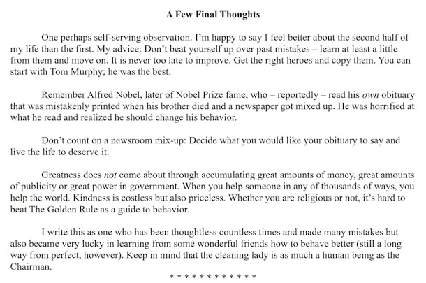 Warren Buffett's "Few Final Thoughts" in his last letter
