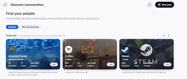 The "discover communities" tab has been helpful, but how are you finding active community with engagement and discussion?