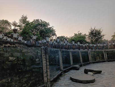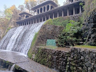 Built by a single person (Nek Chand) with scrap/waste materials in the 1970s, it lies in the Indian city of Chandigarh. The waterfall were later additions