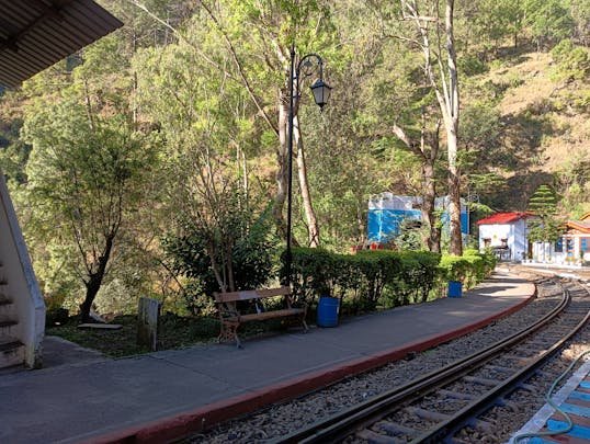 Barog is a Narrow Gauge station on Kalka Shimla rail link, India. With it's curving platform jutting immediately out after a tunnel, it seems quite a good place