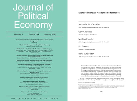 "In a randomized controlled trial, we test whether removal of a barrier to exercise can improve academic performance. We find strong support for this hypothesis: University students who were provided with a free gym card exercised more and had a significant improvement in academi