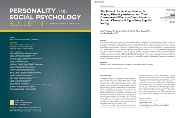 "How people respond to uncertainty has far-reaching socio-political consequences. When perceived as fixed and threatening, individuals may gravitate toward ideologies that undermine intergroup relations and social cohesion. We examined whether fostering an uncertainty-as-enabling