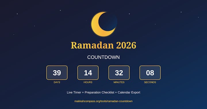 Ramadan 2026 starts February 28th. Are you ready? This free countdown shows: