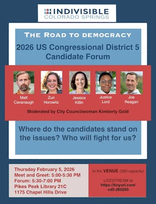 I'm looking forward to the Indivisible CD-5 candidate forum on November 5th at Library 21C. See you there!