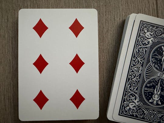 A no-index 6 of ♦️Diamonds from Bicycle. Some day I hope to find an entire deck without the indexes!