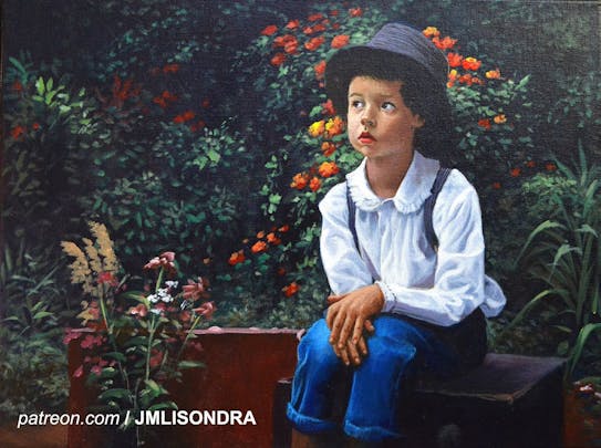 Portrait of a sitting boy - acrylic painting on canvas 12x16 inches by JM Lisondra patreon.com/jmlisondra