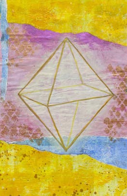 Mixed-media piece created with collage and acrylic paint.