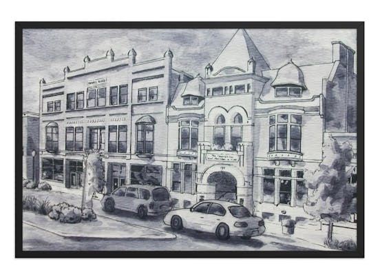 Brightscapes: The Way To Beauty This drawing holds a chapter of Muskegon history that many people remember in their bones. The Russell Block and the Century Club stood through the 1970s transformation when Western Avenue was roofed over to become the Muskegon Mall and surround