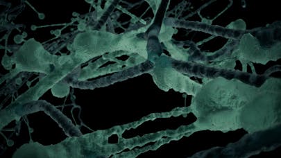 Something I was working on last year, all procedural in Geometry Nodes. I need to circle back around to it, I still haven't nailed down neuron shapes as well as it needs brain matter floating around. The end goal is to make the entire path from the brain to the outside for the be