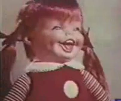 1st Photo - Some TV Show or Play involving Pinocchio 🪵 2nd Photo - Krinkles the Clown 🤡 3rd Photo - No idea mates; creepy doll advertisement somewhere 🪆