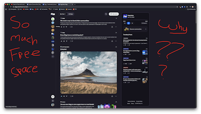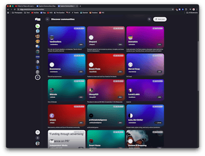 4. The discover communities pages is a nightmare to navigate, it's an endless scrolling feed with very little information. In this case the thumbnail with a description to the right of the thumbnail would improve the information density. Maybe even an A-Z slider to easily go through the alphabet if you somewhat know what you are looking for.