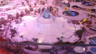 While the structure is that beautiful, classic Space Mountain shell, it lacks the sheer scale of other versions. The foundations had to be sunk into the ground so the "mountain" would not dwarf Sleeping Beauty Castle.