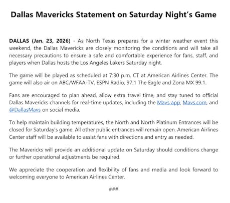 The Mavs vs Lakers game appears to be going ahead at this stage.