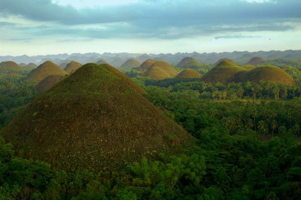 The Chocolate Hills is in the Philippine province of Bohol. There is a minimum of 1,260 hills and possibly up to 1,776, spread over an area of more than 50 square kilometres.