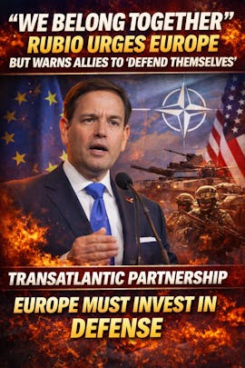 U.S. Senator Marco Rubio delivered a dual-message to European leaders this week: America and Europe “belong together,” but allies must take greater responsibility for their own defense. Speaking about transatlantic relations, Rubio emphasized the long-standing partnership betwee