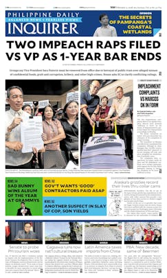Wed, 11 Feb 2026 • Front page for national and business newspapers
