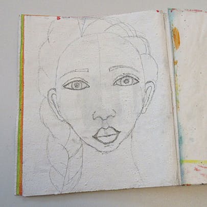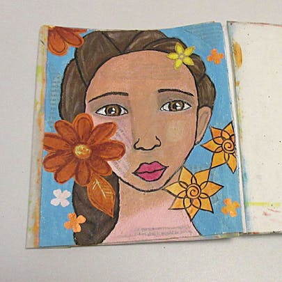 My brain works in a mysterious way, so I have a lot of thematic art journals. In this case, this is an art journal created from a shop catalogue. I primed the pages with white gesso and used it to practice painting faces in acrylics. I had no idea what I was getting into when I s