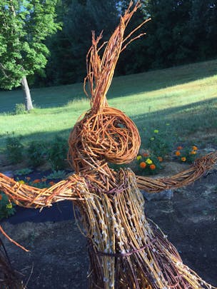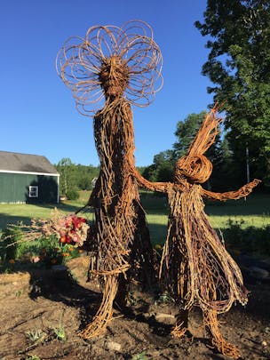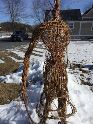 I sculpt with willow. These are mostly willow. No strings or wire. Otherwise just a stone heart. I saw them, I guess, then made the sketch. One stick after another until they filled a space in the air. I really liked these two. They looked right back at me.