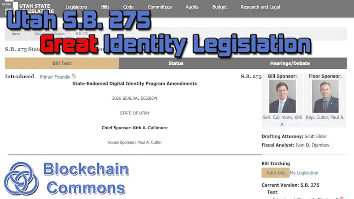 Utah is currently working on their State-Endorsed Digital Identity (SEDI) program. Their newest bill, SB 275, is a great piece of legislation that protects user autonomy and agency.
