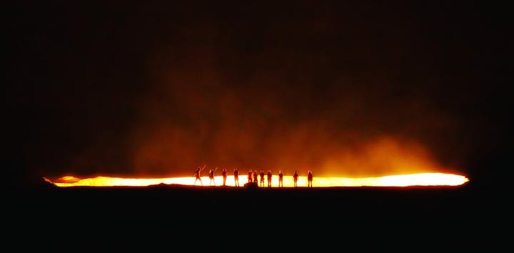Night life at the Gates of Hell, the Darvaza burning gas crater in Turkmenistan