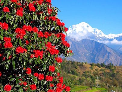 The rhododendron, locally known as Lali Gurans, is the national flower of Nepal and a symbol of the country’s natural heritage.