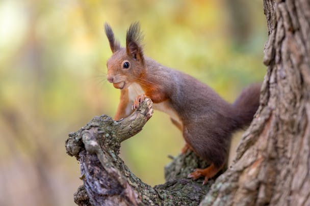 The European red squirrel (Sciurus vulgaris) is native to Europe and parts of Asia. Typically reddish, though colour varies, it is smaller and more delicate than the grey squirrel. In the UK and Ireland, it is threatened by invasive grey squirrels, which came from North America,